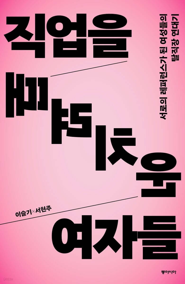 ’남자 하기 좋은 직업’은 없는데, ‘여자 하기 좋은 직업’은 있는 이유가 무엇일까. 왜 후자는 대부분 돌봄을 전제로 하는 노동일까. 내가 하고 있는, 하기로 한 직업은 온전히 나의 판단에 의해 주체적으로 선택된 것일까. 일하는 여자, 일하기로 마음먹은 여자들은 반드시 이런 질문을 스스로에게 던져보아야 한다. 『직업을 때려치운 여자들』은 여초 업계 출신으로 지금은 ‘직때녀’ 당사자이기도 한 이슬기와 서현주 두 사람이 서른두 명의 여초 업계 근로자들을 만나 대화한 기록이다.
